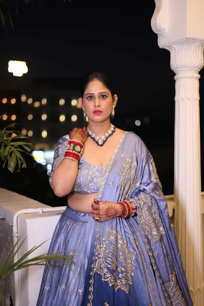 Make a royal statement with this mesmerizing blue ombre embroidered lehenga from Radhika Boutique. The elegant gradient blend—from soft sky blue to deep navy—creates a rich, luxurious look that stands out beautifully at any event.
