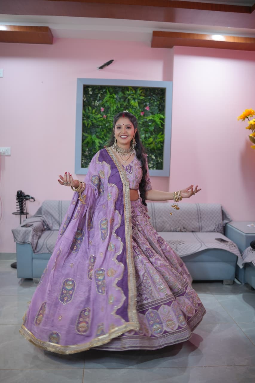 Designed for a flawless silhouette, the lehenga comes with heavy can-can and bukram stitching, ensuring a perfect flare and royal volume with every twirl. Its elegant traditional design, combined with a majestic finish, makes it an ideal choice for brides and fashion enthusiasts who seek premium craftsmanship.