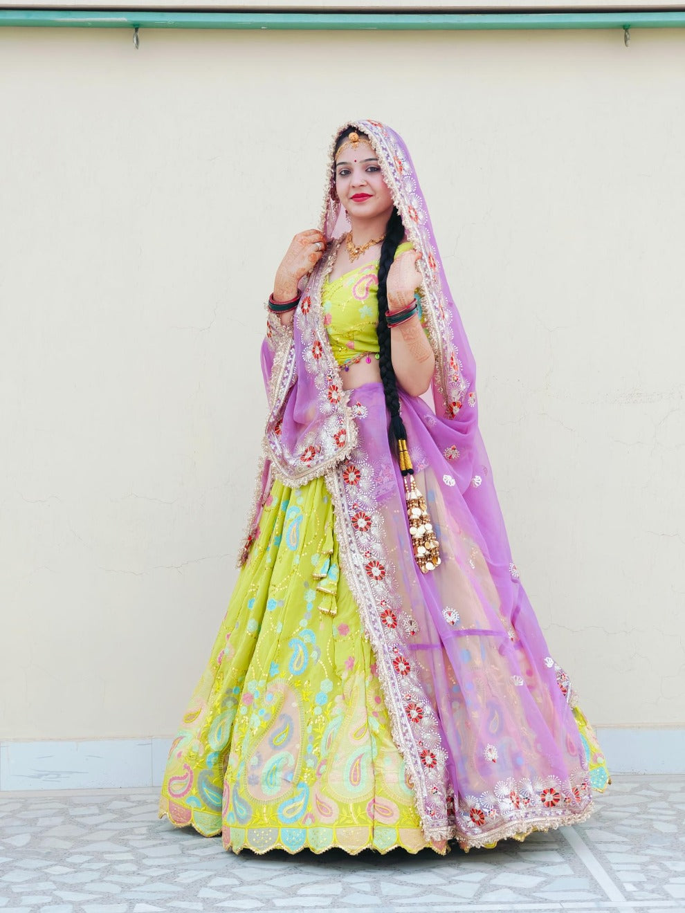 Lemon Lavender Rajasthani Lehenga | Radhika Boutique